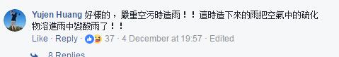 現(xiàn)在,重點來了,有臺灣網(wǎng)友質(zhì)疑,若真的可以實現(xiàn)“人造雨”的話,那雨水里融進(jìn)了空氣中如硫化物之類的有害物質(zhì),不就形成了“酸雨”,再降落到地面或農(nóng)田的話,不僅會造成地表水的污染,民眾吃下或喝下的也都是有害物質(zhì)啊,這不就相當(dāng)于全臺灣的民眾都在慢性自殺嗎?