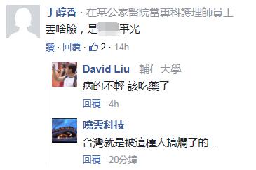 文章一出,引發(fā)了臺灣媒體和網(wǎng)友的熱議,多數(shù)網(wǎng)友都和po主的觀點相同,但也有人覺得“不是丟臉,是爭光”,對此不少人大罵“臺灣就是被這樣的爛人搞壞的”;除此以外,還有網(wǎng)友把這樣“仇陸”的行徑歸咎到蔡當局身上,“民進黨洗腦的后果”。