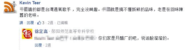 通過兩岸跨年的明星陣容其實不難看出,幾乎所有炙手可熱的一線明星都選擇到大陸演出,但有些臺灣網友似乎不這么認為,“大陸請的都是臺灣過氣歌手,他們就是搞不懂新鮮的品味”,結果被懟是“開醋廠的”、“井底之蛙”。