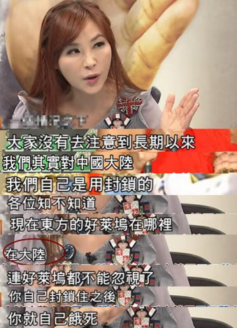 你以為這樣的情況已經很糟糕了嗎?當然不是!對于如今的臺灣來說,更糟糕的是,自己落后卻還看不到大陸的進步!許圣梅為此怒吼:現在的“東方好萊塢”在大陸,而我們卻在“封鎖”大陸,“你自己封住后,你就自己餓死”!