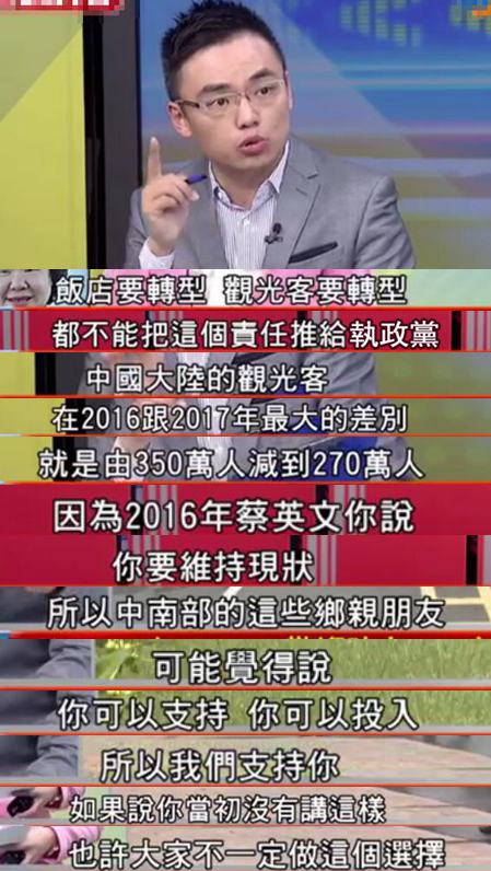 來看看這位民進黨議員是如何為“鐵票倉跳票”作解釋的吧:民進黨曾批判馬英九是“數字治臺”,而這個綠營小姐姐一上來就先祭出“數字陣”,說從經濟指數上看,民進黨與馬英九執政時期好很多了啊;之后拿出“甩鍋招”,說飯店倒閉有很多方面的原因啊,店家不要都怪到民進黨身上,你們自己也要轉型;接著開始“數政績”,說陸客雖然不來了,但日本和東南亞客人有增加啊,而且像臺中市長林佳龍之類的也有積極的幫地方在招商;最后搬出“誠懇臉”,表示雖然民進黨做了很多“復興經濟”的事,但若人民感受不到,那蔡當局也會“好好檢討”……