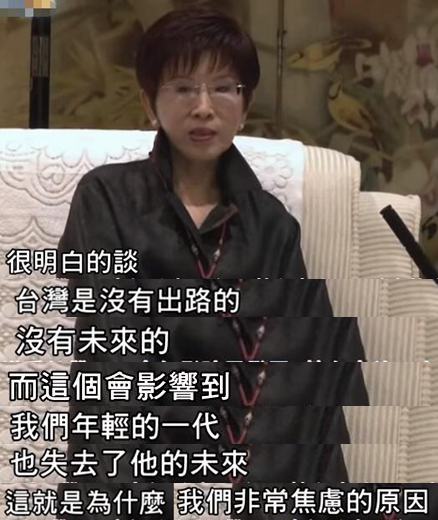 7月7日,洪秀柱率團出席“海峽兩岸青年發展論壇”時表示,兩岸問題若無法解決,那臺灣就無未來與出路,而這會讓臺灣年輕一代也失去未來,“這就是為什么我們非常焦慮的原因”。
