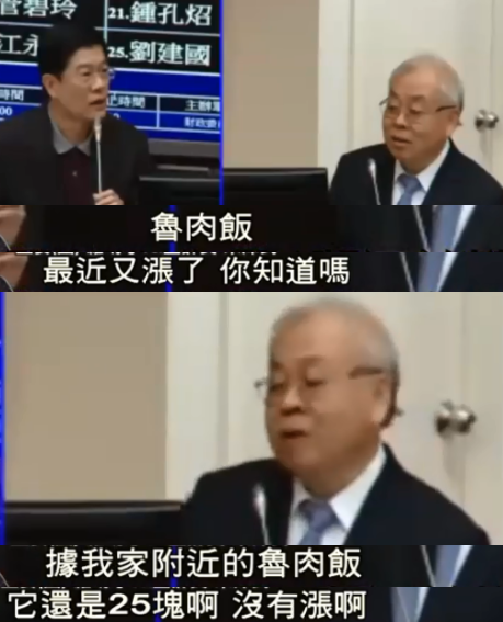 下面撩叔就為大家回放一下當時的具體情景。近日,“立委”羅明才在“立法院財委會”質(zhì)詢朱澤民,話題首先從鹵肉飯開始。羅問朱,最近鹵肉飯漲價了你知道嗎?朱的回答很清奇,我家門口那家就沒漲~
