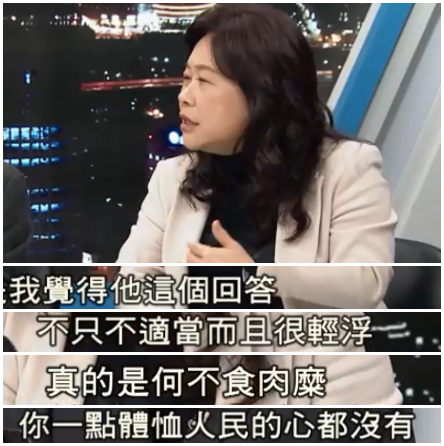 這事兒被媒體報道后,引來網(wǎng)友和評論人士的不斷撻伐。前“行政院發(fā)言人”鄭麗文表示,簡直答非所問胡說八道,難道“立委”是閑得發(fā)慌問你水餃價格,是問你對物價上漲的應(yīng)對措施!