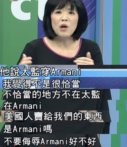 不過對于韓國瑜的“太監說”,除了蔡英文,還有其他人也表達了“不滿”。臺北議員唐慧琳表示,韓國瑜說“太監即使穿上Armani西裝,還是太監”的比喻不是很恰當,因為美國人賣給我的東西就不是Armani,