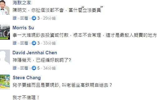 出事兒的第一時間,主角陳明文“神隱”了,但其次子陳政廷在臉譜網(wǎng)的解釋是:這筆資金是他爸爸要給他去菲律賓開珍珠奶茶的“創(chuàng)業(yè)金”。