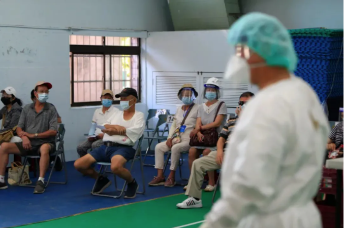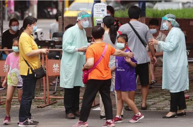 臺灣民眾等待病毒檢測(圖自臺媒)