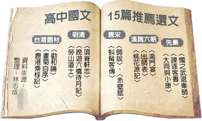 據(jù)臺(tái)灣《中國(guó)時(shí)報(bào)》報(bào)道,在10月15日的“課審大會(huì)”中,研修小組提出15篇推薦選文,“課審委員”對(duì)其中的《臺(tái)灣通史序》、《諫逐客書》及《鴻門宴》等多篇文章均有意見,因此決定昨天再討論一次,最后僅《臺(tái)灣通史序》被舍棄。