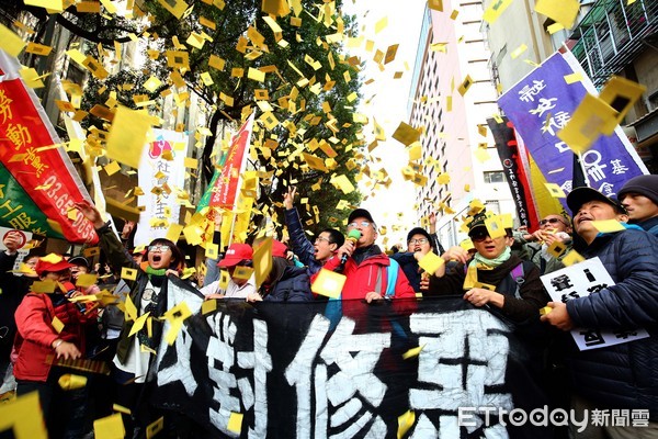 憤怒的勞團繞行“立法院”為民進黨送終。(圖片來源:臺灣“聯合新聞網”)