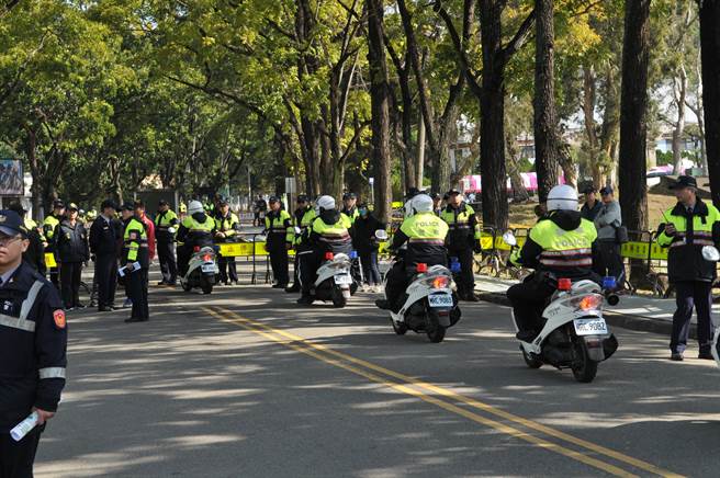 蔡英文赴南投幫黨內候選人造勢拉票,警方出動大量警力戒備。(圖片來源:臺灣《中時電子報》)