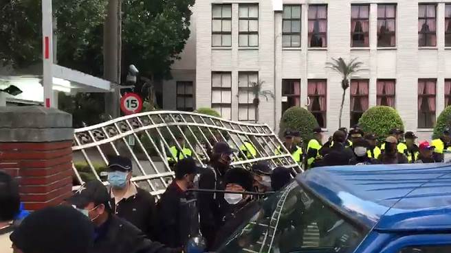 反年改團(tuán)體沖“立法院”。(圖片來源:臺灣“東森新聞云”)