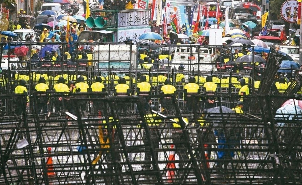 有基層警察表示,贊成不要用拒馬,但面對陳抗別再拿警察當(dāng)擋火墻。(圖片來源:臺(tái)灣《聯(lián)合報(bào)》)