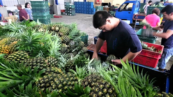 嘉義縣鳳梨斤年產(chǎn)量增加,單一合作社每天進(jìn)貨達(dá)10萬(wàn)臺(tái)斤以上,農(nóng)民直言每臺(tái)斤均價(jià)低于4元完全不符成本。(圖片來(lái)源:臺(tái)灣《聯(lián)合報(bào)》)