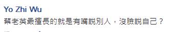他痛批蔡英文不知道是故意裝迷糊還是惡意遺忘?目前執政的是民進黨,淹水災區也全是民進黨執政,掌握龐大的行政資源,救災絕對責無旁貸,卻好意思說在野黨不幫忙。況且,不管是韓國瑜、高思博、張麗善或者吳育仁等國民黨提名的縣市長候選人,都比蔡更早涉水勘災,蔡難道從來都不看電視嗎?說在野黨沒有幫忙,就是標準的政治口水,而且是富人看著乞丐在救災,還嫌乞丐姿勢不好看。