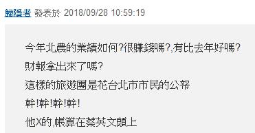 臺(tái)北市府官員表示,北農(nóng)今年以來(lái)營(yíng)利狀況呈現(xiàn)衰退,不過(guò)對(duì)于董事會(huì)的參訪行程卻比過(guò)去大手筆,12天的行程還可攜帶眷屬同行,全部由北農(nóng)買單。