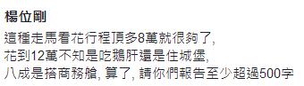 根據(jù)承攬行程的旅行社規(guī)劃,一行人來(lái)回搭長(zhǎng)榮班機(jī),去程從荷蘭入境,最后由法國(guó)離境。每晚住宿飯店皆安排位于市中心的4星級(jí)酒店,像是在巴黎入住4晚的拉德芳斯萬(wàn)麗酒店,每晚要價(jià)8000多元。而吳音寧一行抵達(dá)荷蘭隔天即安排考察紅燈區(qū),有人質(zhì)疑,未來(lái)臺(tái)灣果菜市場(chǎng)是要規(guī)劃結(jié)合性產(chǎn)業(yè)觀光區(qū)?