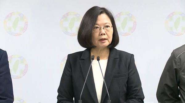 去年11月24日晚間,民進黨在“九合一”選舉中大敗,蔡英文宣布辭去民進黨主席。(圖片來源:臺灣《聯合報》)