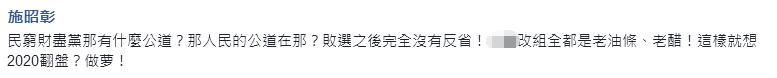 看著民進黨當局這番人事任命,臺灣資深媒體人黃創夏忍不住在臉譜網(Facebook)發文:蘇貞昌輸29萬票將擔任“閣揆”;林佳龍輸20萬票將擔任資源最多的“交通部長”;陳其邁輸15萬票成為位尊無權的副“院長”。若依此類推,輸33萬6千票的姚文智,當然該是領導人。他恍然大悟,原來2020代表民進黨參選的不該是蔡英文,而是姚文智。
