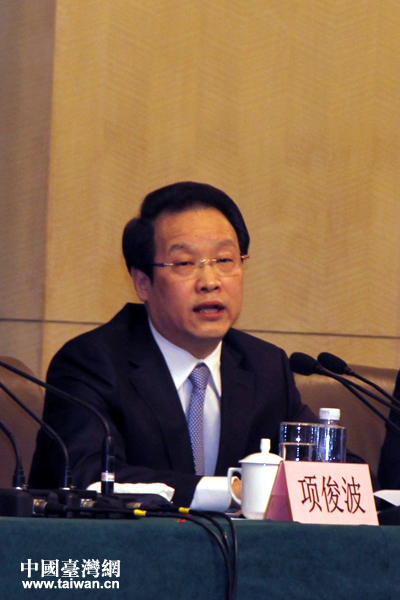 保監(jiān)會主席項俊波就建立我國巨災保險制度問題回答記者提問。(中國臺灣網(wǎng) 高斯斯 攝)