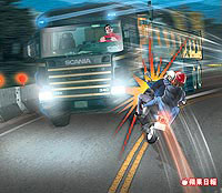 中國(guó)臺(tái)灣網(wǎng)11月30日消息 臺(tái)北縣一名在卡拉OK店打工的離婚女子,昨下班搭乘一名酒客的摩托車離去,未料摩托車行經(jīng)貢寮濱海公路一處彎道,卻失控沖至對(duì)向車道,與一輛砂石車擦撞,女子當(dāng)場(chǎng)遭砂石車輾成三截慘死,醉酒男子也重傷昏迷。