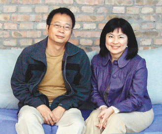 陳綾蕙(右)受不了錢莊逼債,燒炭身亡,圖為陳綾蕙生前和畫家丈夫張志成合照。圖片來源:臺灣《聯合報》
