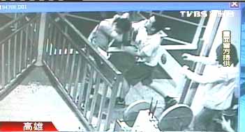 當天,穿短褲的臺海軍士兵追逐站務員,抓到就是一陣痛打,嚇得站務員趕緊躲到旁邊,打了一拳還不過癮,一旁穿牛仔褲的臺海軍士兵也上前追打,力道之大,連一旁的女子都制止不了。
