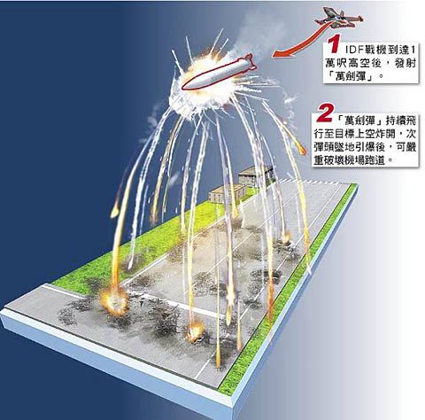 林郁方發布新聞稿表示,“萬劍”系統內裝有上百枚次彈頭,具遠距遙攻能力,除可用于破壞、癱瘓機場跑道外,對部隊集結區、港口裝卸區、飛彈及雷達陣地等,也有極大殺傷力。