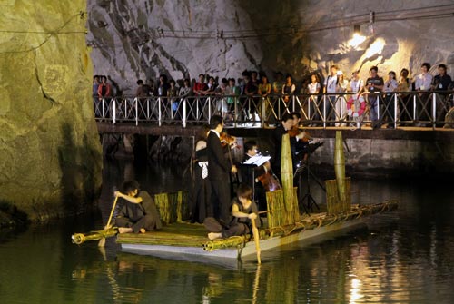 金管處還在園區翟山小艇坑道先后舉辦 2次坑道音樂節,當音樂在昔日軍事工事的花崗巖水道中悠揚,讓規劃及參演的大提琴家張正杰禁不住說是“最難忘的舞臺”。