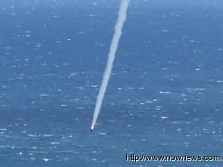 臺(tái)軍導(dǎo)彈從發(fā)射箱射出后由于燃燒不完全,直接墜落海面。圖片來源:臺(tái)灣“今日新聞網(wǎng)”