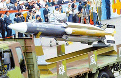 臺軍研發(fā)的最新武器“雄風三型超音速攻艦飛彈”,在6月份的試射過程中脫靶凸槌。圖片來源:臺灣《中國時報》