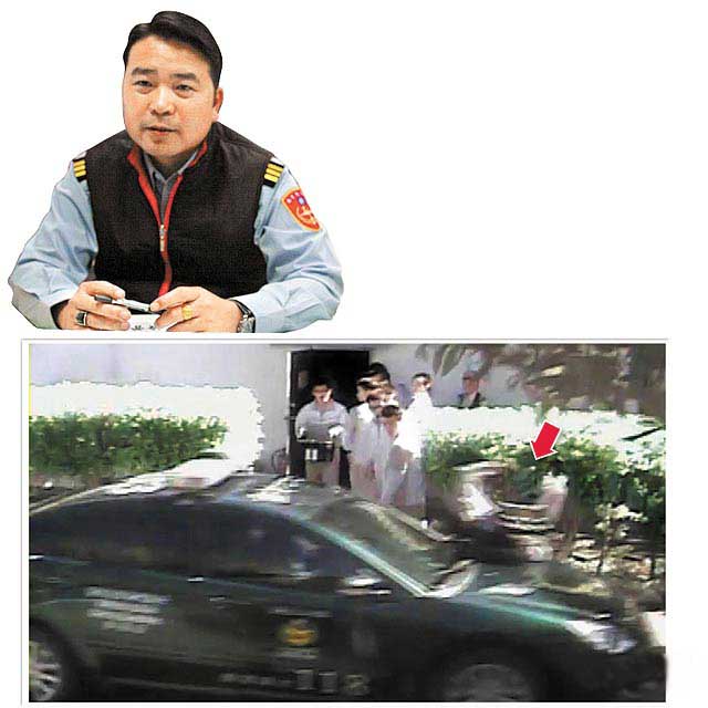 王建文(上圖)搭公務車撞傷士兵(箭頭處,翻攝畫面),竟私下和解。圖片來自臺媒