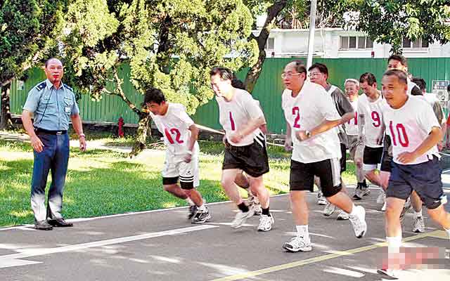 臺防務主管部門訂頒的臺軍體能訓測實施計劃規定,是以3000米徒手跑步、仰臥起坐、伏地挺身3項為主,鑒測成績列入基礎、進修、深造教育及人事運用。只要體測成績不及格,將嚴重影響其在臺軍旅生涯的發展,因此,許多臺軍人都會利用下班時間勤練體能。3000米徒手跑步必須14分鐘內跑完才算及格。