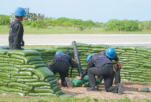 臺海巡部隊將于9月在南沙太平島進(jìn)行火炮射擊演習(xí),太平島臺軍官兵近日都在進(jìn)行射擊預(yù)習(xí),圖為臺軍官兵進(jìn)行81迫炮射擊預(yù)習(xí)狀況。來源:臺灣《聯(lián)合晚報》