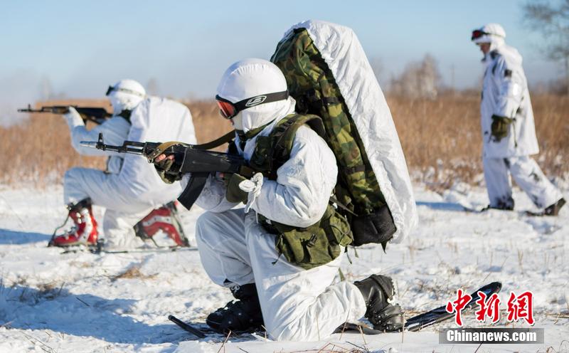 當地時間12月2日,俄羅斯遠東地區,北極步槍隊的步兵正在極寒地區開展軍事訓練。圖片來源:東方IC 版權作品 請勿轉載