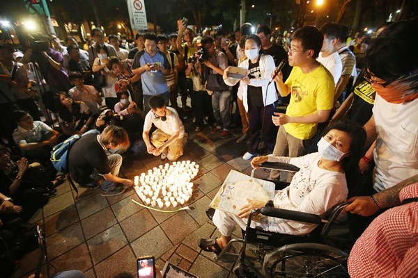 上百名民眾準備了鮮花和紙蛋糕聲援蔡媽媽。(圖片來自臺媒)