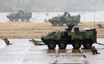 臺軍2015年春節(jié)加強戰(zhàn)備,陸軍27日在新竹湖口營區(qū)演練,出動CM11戰(zhàn)車、CM32甲車、特戰(zhàn)人員等兵力,展現(xiàn)協(xié)同作戰(zhàn)能力。圖片來源:臺灣“中央社”