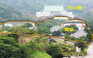 陽明山中山樓附近的建筑群,畫面正后方的古典大樓即是中山樓,其余均是由“國防部”主管的青邨,黑瓦建物是當(dāng)年維安人員居住的地方。圖片來源:聯(lián)合報