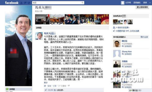 今天是情人節(jié),馬英九今天上午在“臉書(shū)”(Facebook)po文感謝夫人周美青的相親相愛(ài)與相知相惜,馬英九還以感性口吻強(qiáng)調(diào)“回首來(lái)時(shí)路,千言萬(wàn)語(yǔ)難以形容我的幸運(yùn),有這么好的牽手一路相伴”。“得妻如此,夫復(fù)何求?”