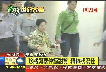 中新網4月7日電 據臺灣“今日新聞”報道,為厘清龍潭購地案傭金,陳水扁夫人吳淑珍7日下午將與前中信金副董事長辜仲諒進行對質。吳淑珍在2點27分左右,神態自若地抵達臺北地方法院,而辜仲諒則早吳淑珍2分鐘踏入法院,表情看起來有點嚴肅、肩膀看起來也相當僵硬。