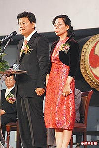 花蓮縣長傅昆萁20日公開宣布妻子徐榛蔚出任副縣長,成為全臺最勁爆的就職典禮。來源:臺灣《蘋果日報》