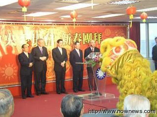 國民黨團拜不僅請來祥獅獻瑞,馬英九、吳伯雄還特別致詞祝賀全體國民黨黨員新春快樂。 來源:臺灣“今日新聞網”