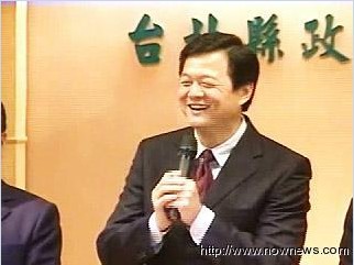 周錫瑋23日上午現(xiàn)身臺北縣府,揮別記者會上的沉重、含淚,面帶微笑接受媒體詢問。圖片來源:今日新聞