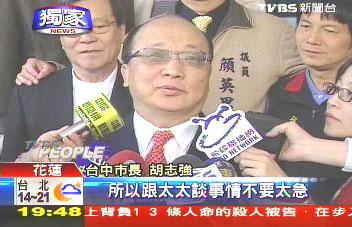胡志強對金溥聰開誠布公,終于說出“我愿意”,但臺面上卻似乎還是有顧慮,不肯自己親口說。臺中市長胡志強說:“我現在和黨部的約會見面,如果能夠約到金秘書長,據說可能要等到禮拜六或禮拜天,所以跟太太談事情不要太急,不是扭扭捏捏,我不會給太太壓力,我是確實是太太不愿意。”
