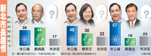 臺《聯合報》民調:新北市選戰蘇貞昌持領先優勢