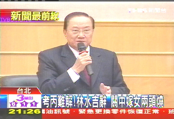 林水吉閃電辭職獲準(zhǔn),關(guān)中為了處理“考績(jī)法”修正的后續(xù)風(fēng)波推遲出席女兒婚禮的行程。(圖:臺(tái)灣TVBS電視臺(tái))