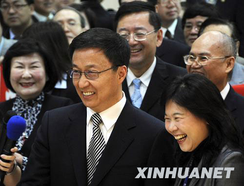 4月6日,上海市市長韓正(前左)抵達臺北松山機場,臺北市副市長李永萍(前右)前來接機。應臺北市市長郝龍斌的邀請,上海市市長韓正4月6日上午率上海市政府訪問團抵達臺北,對臺灣進行為期4天的訪問。韓正將出席“上海—臺北城市論壇”,并推介上海世博會。由260余人組成的上海市政府訪問團,將與臺北市在經濟、文化、旅游、科技、環保等方面開展深入交流。上海企業將與臺灣企業簽署一批經貿合作項目。訪問團還將參訪臺北縣、臺中市和桃園縣。新華社發(吳景騰 攝)