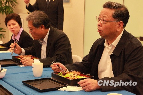 “臺灣的便當很好吃。臺灣叫便當,我們叫盒飯。”吃了一半,黃小晶省長離席,來到記者就餐的另一個小房間,特別向跟隨采訪報道的臺灣媒體朋友們表示感謝和問候,并和臺灣記者攀談起來。