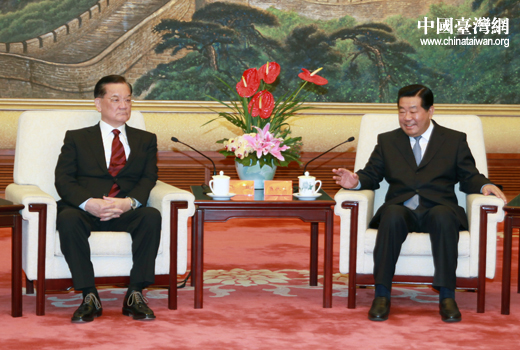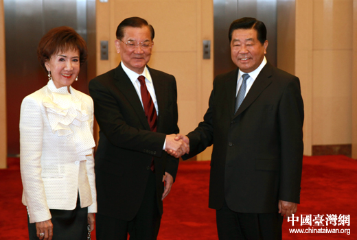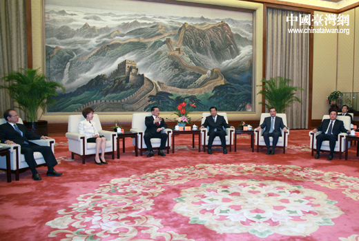 5月7日下午,中共中央政治局常委、全國政協(xié)主席賈慶林在北京人民大會堂會見了前來大陸參訪的中國國民黨榮譽主席連戰(zhàn)一行。(中國臺灣網(wǎng) 田云鵬 攝)