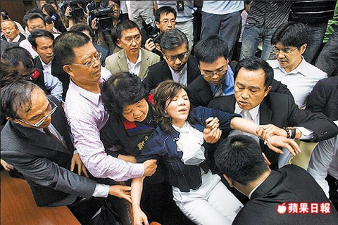 據報道,“立院”上演全武行戲碼,打得火熱,連宣讀議程的小姐也無端遭殃,那平日要逐字逐句記錄存檔的“立院議事錄”的差事卻也不得不中斷。發生沖突的這一天,4月26日,登入“立法院”議事公報系統查詢,時間地點清清楚楚,甚至爆發沖突前一刻,更換會議場地一事也記錄在案。