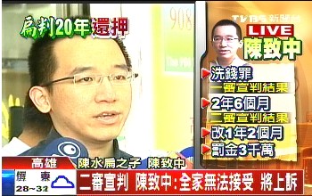 陳致中聲稱對于二審宣判的結果不滿意。圖片來源:臺灣TVBS電視臺